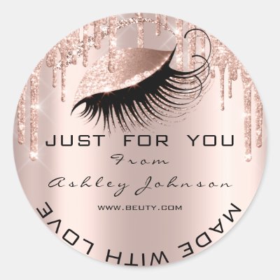 Glitter Thank Lashes Rose Gold Made With Love Classic Round Sticker