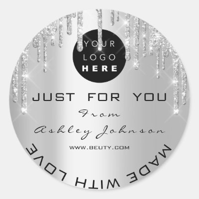 Ad: Glitter Thank Logo Made With Love Silver Gray Classic Round Sticker