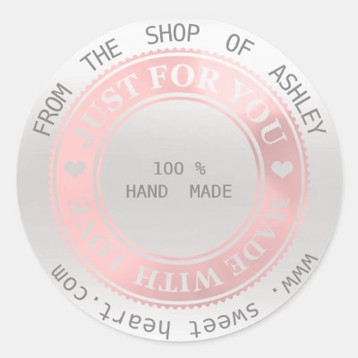 Ad: Handmade Logo Name Web Heart Love Silver Pink Gray Classic Round Sticker