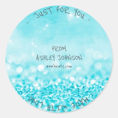 Made With Love Ocean Blue Glitter Sparkly Classic Round Sticker