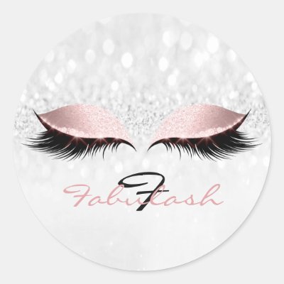 Monogram Name Glitter Pink Eye Lash Girl 16 Silver Classic Round Sticker