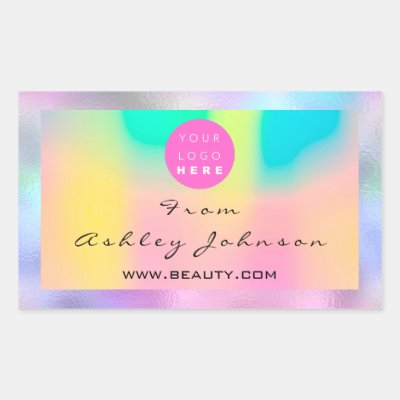 Nail Lashes Makeup Holograph Rainbow Logo Rectangular Sticker