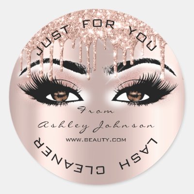 Ad: Name Beauty Lashes Drips Pink Gold Lashes Cleaner Classic Round Sticker