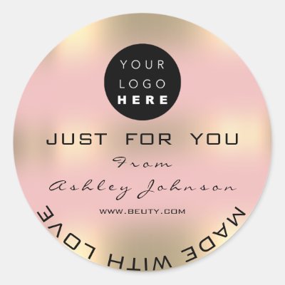 Ad: Thank Logo Holograph Made Rose Ombre Gold Classic Round Sticker