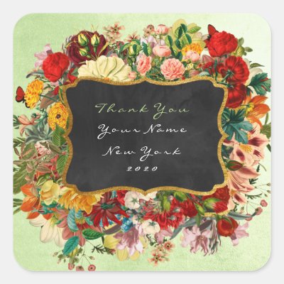 Ad: Thank You Gift Baroque Mint Green Roses Floral Square Sticker