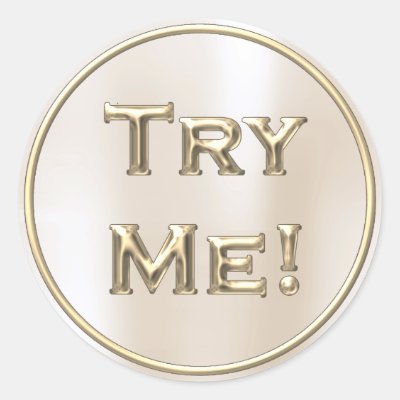 Ad: Try Me Ivory Gold Gray For Tester Sample Container Classic Round Sticker